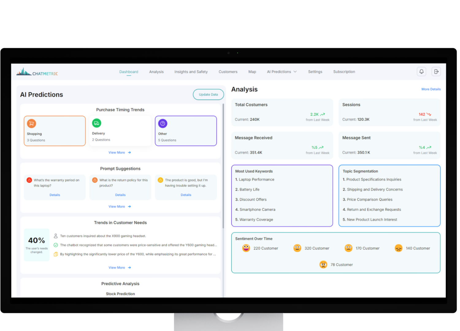 Enhance chatbot interactions with intelligent prompt suggestions powered by AI. ChatMetric analyzes conversations in real-time, offering optimized prompts that improve response quality and engagement. Keep your chatbot proactive, relevant, and customer-focused with every interaction.